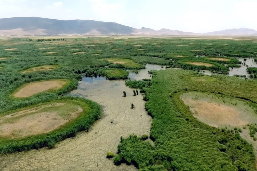 Hashlian Wetland is one of the tourist attractions of Kermanshah province, and due to its diverse plant and animal species, it is one of the most important aquatic ecosystems in the province. The path to Hashlian Wetland is located in Hashlian village, in the Allahyarkhani district, at the foot of the Khorin and Weis mountains, 26 kilometers northwest of Kermanshah, on the Kermanshah-Ravansar Road. Hashlian Wetland has more than a hundred small and large islands occupying more than a hectare of its area. These small and tall islands sometimes completely sink into the water during rainfall. The main sources of water supply for this vast wetland are the local rainfall and the Sabzali spring. Hashlian Wetland hosts migratory birds from Central Asia and other parts of the world, as well as nearby cities during the cold seasons and autumn rains. This attracts many nature enthusiasts and bird watchers to this wetland every year. Greylag goose, flamingo, Gadwall, mallard, red-necked grebe, bittern, pelican, swans, red-billed chough, green-billed toucan, great white pelican, and common coot are among the resident and migratory birds of Hashlian Wetland.
