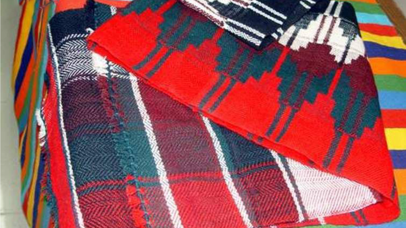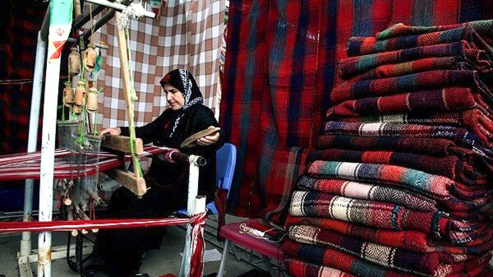 Moj bafi is one of the arts and handicrafts of the people of western regions of Iran, and has a very long history. It has accompanied nomadic and villager people of years. Moj is a hand-woven textile with big geometric and cross patterns. The wraps and wefts yarn are produced from completely handspun wool. This textile is weaved by the traditional “Chahar Verdi” machinery and in colors such as blue, dark blue, yellow and red. Generally, two kinds of products are weaved in Moj workshops: 1. “Sajadeh” or prayer rugs, that is used as a floor cover when praying. The size of this prayer rugs are usually one hundred in one hundred and fifty centimeters. 2. Moj or wrapping for the bedding, that are weaved usually by the order of the clients. The Moj textile is weaved in two meters and the width, depending on the thickness of the yarn, vary from forty-five to seventy-five centimeters.