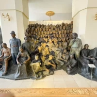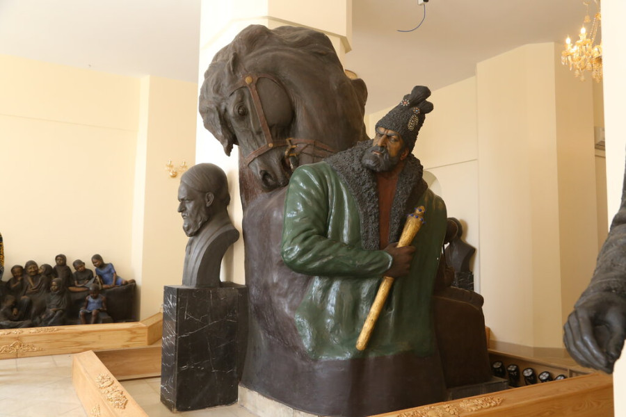 Interesting among the artworks exhibited in Sana’ti Museum of Tehran are a group statue named Qajar political prisoners, Ferdowsi, Sa’di, Crucified Jesus, Dehkhoda, Kamal al-Molk, Karim Khan Zand, Jawaharlal Nehru, Mahatma Gandi, Louis Pasteur, Malek al-Shoara Bahar, Shah Abbas, Nader Shah Afshar and many more. The sculptures are located in the first floor of the museum and the second story has been devoted to watercolor tableaus of the artist in most of which the subject is the portraits of highlighted figures like Nima Yushij, Imam Khomeini, Mossadeq, ordinary people, natural landscapes and animals.