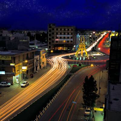 El agua de la ciudad se abastece a través de pozos, acueductos, manantiales y el río Hirmand. El lago Hamoon, que es el lago de agua dulce más grande de Irán, se encuentra en esta área.